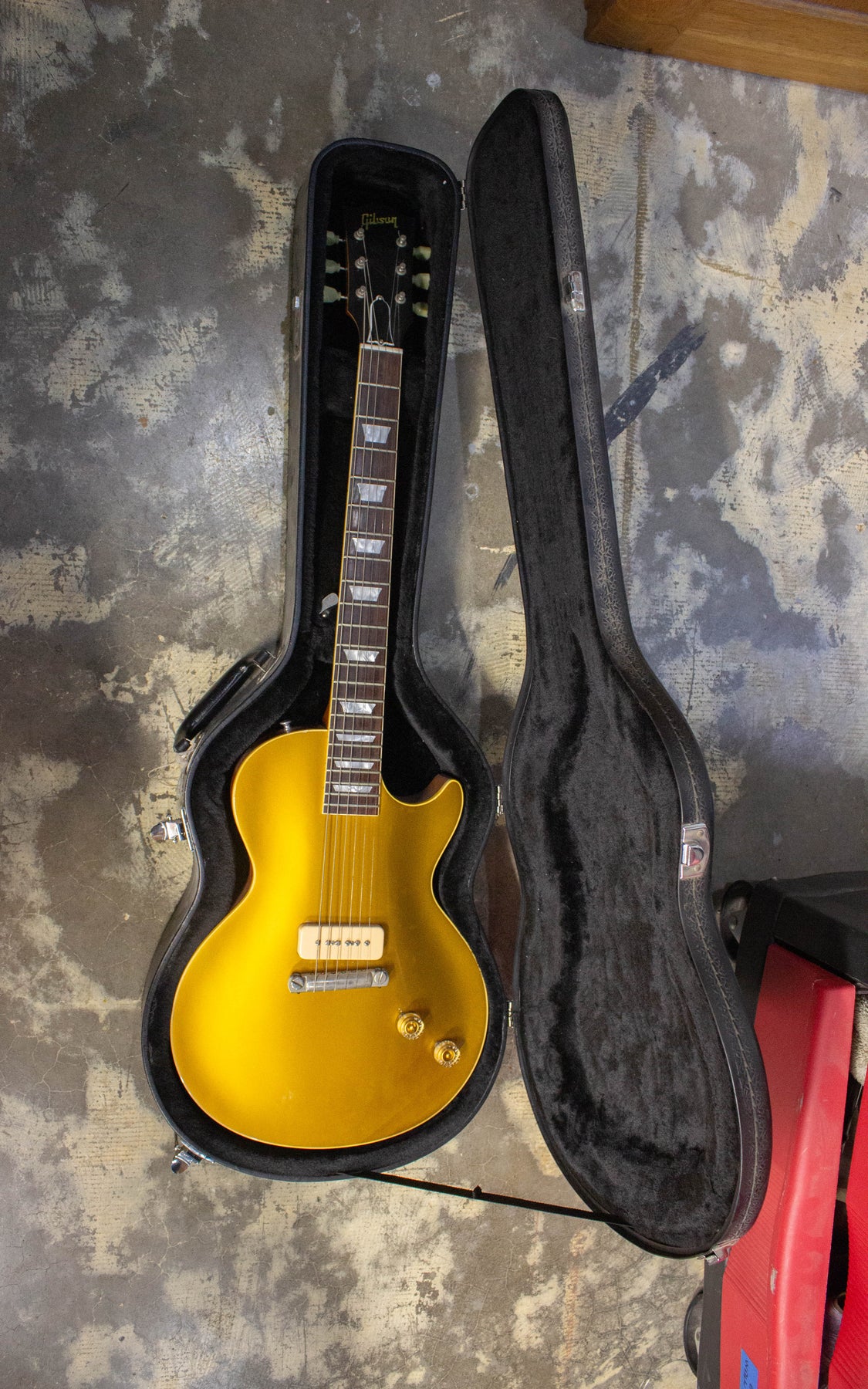 2003 Gibson Les Paul R4 Single P90, Serial No. 43004. This very rare guitar is in excellent condition, with only minor signs of having been played. Aside from its stunning iconic looks, it has a nice chunky neck and plays great. Naturally aged single coil P90 sounds incredible.